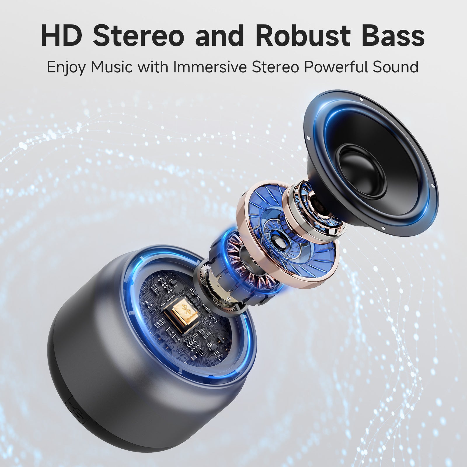 - 【True 360°Stereo Sound】 Stereo sound with full bass---the bluetooth speaker delivers immersive sound with rich bass, mids and highs,dynamic sound. Even at maximum volume, without any breaking sound,in the same way as the live concert performance. True Wireless Stereo function - enables two Bluetooth wireless speakers to be connected in tandem.