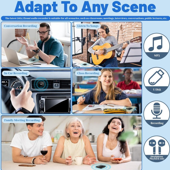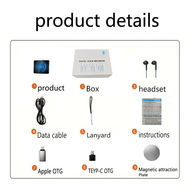 Voice Recorder Ultra-thin Mini Double-sided Built-in Magnet