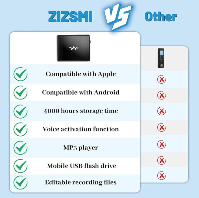Recording time: about 38H (about 50 hours of voice-activated recording)